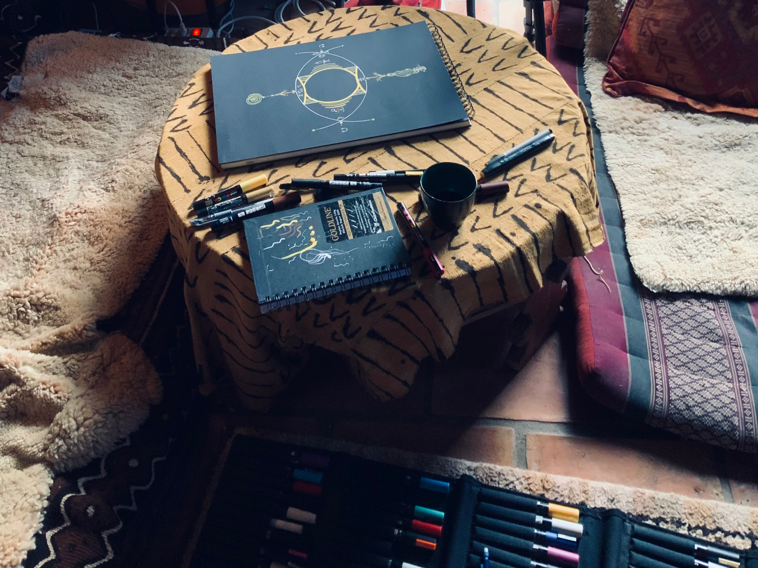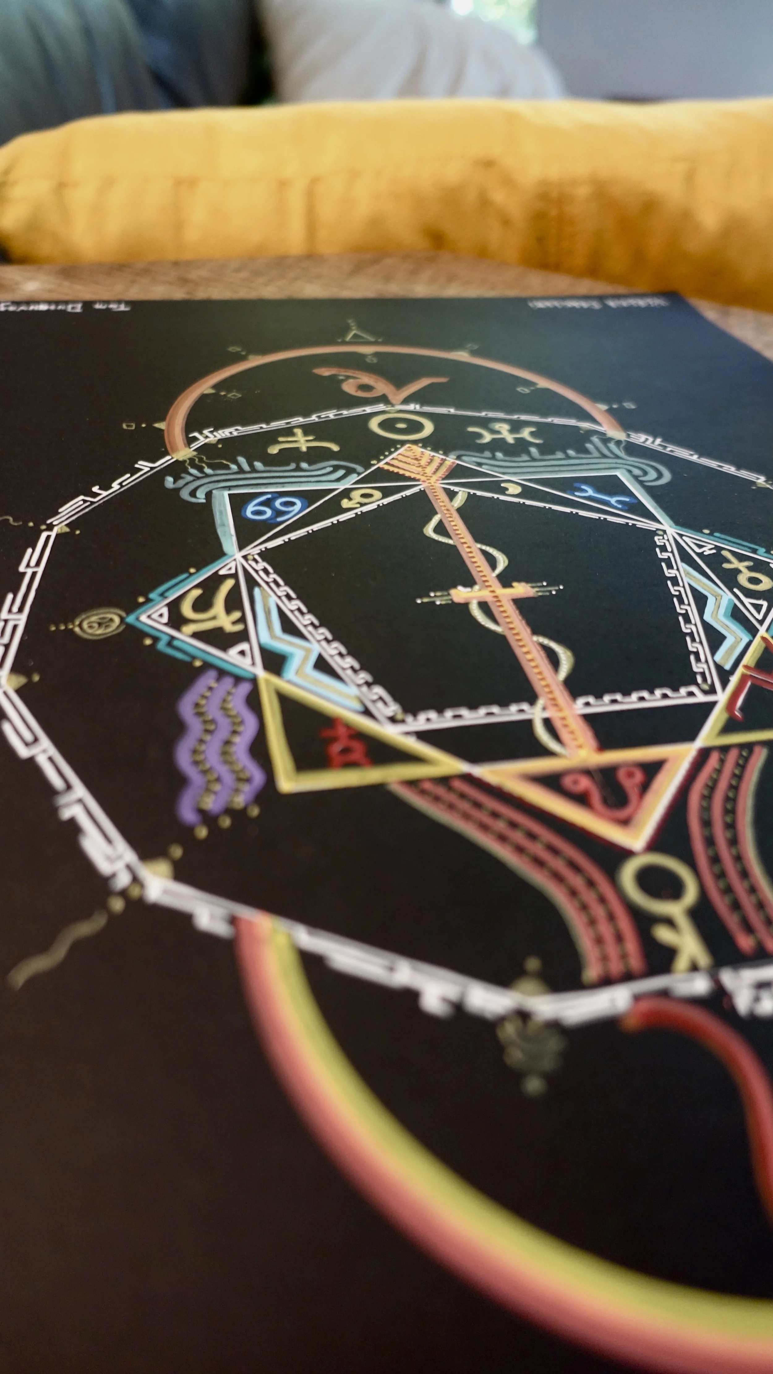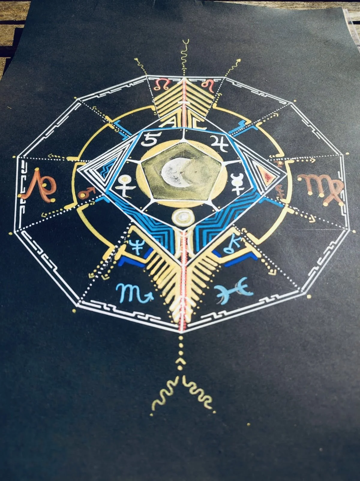 We weave these symbols using universal codes sacred proportions, planetary cycles, the vibration of numbers—to infuse them with deep harmony. Our process blends intuition and precision, order and chaos, meticulous lines and spontaneous creative flow.